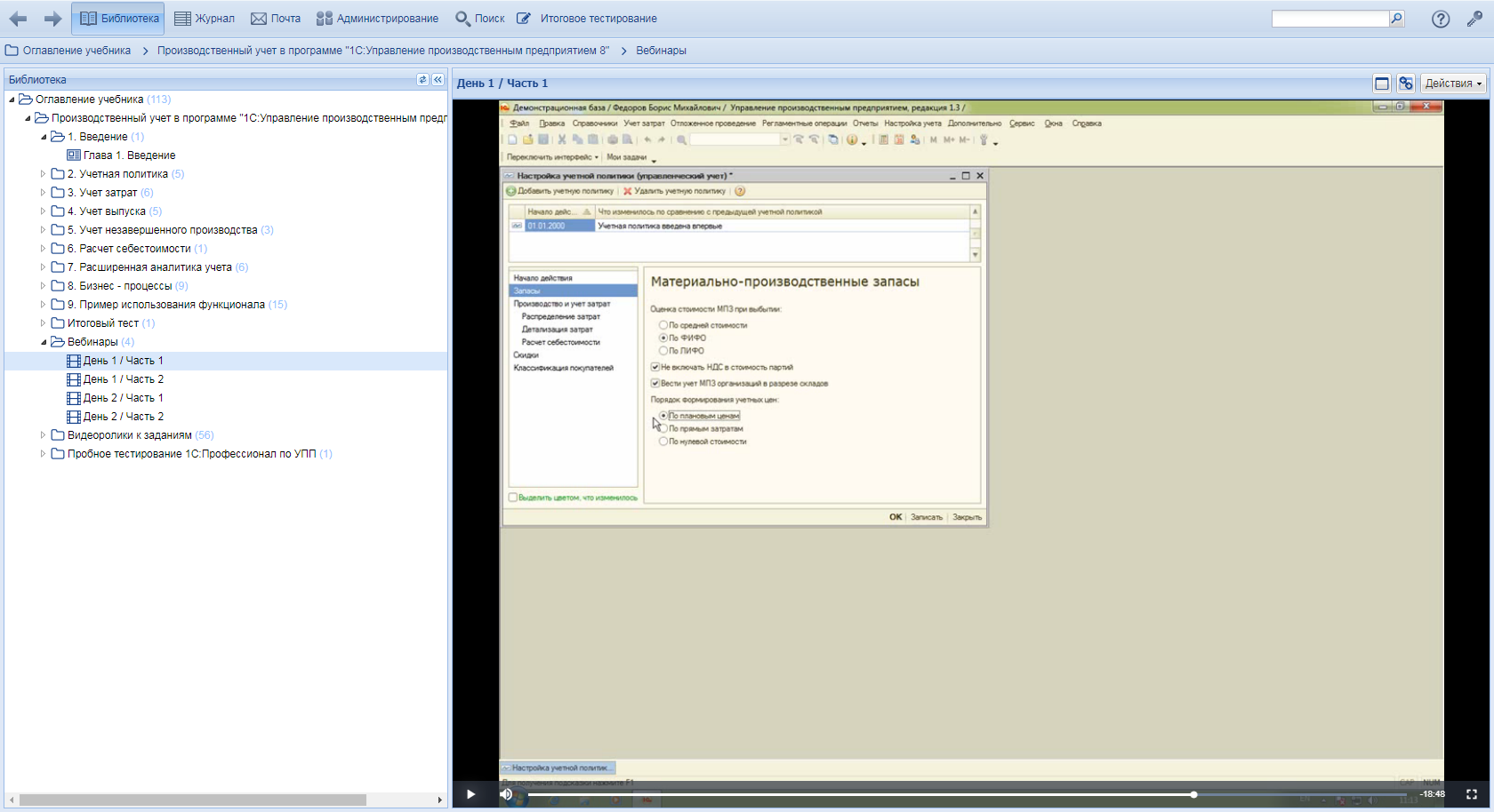 Курс соответствует очному курсу 1С : Учебного центра №1 "Производственный учет в программе "1С:Управление производственным предприятием 8"